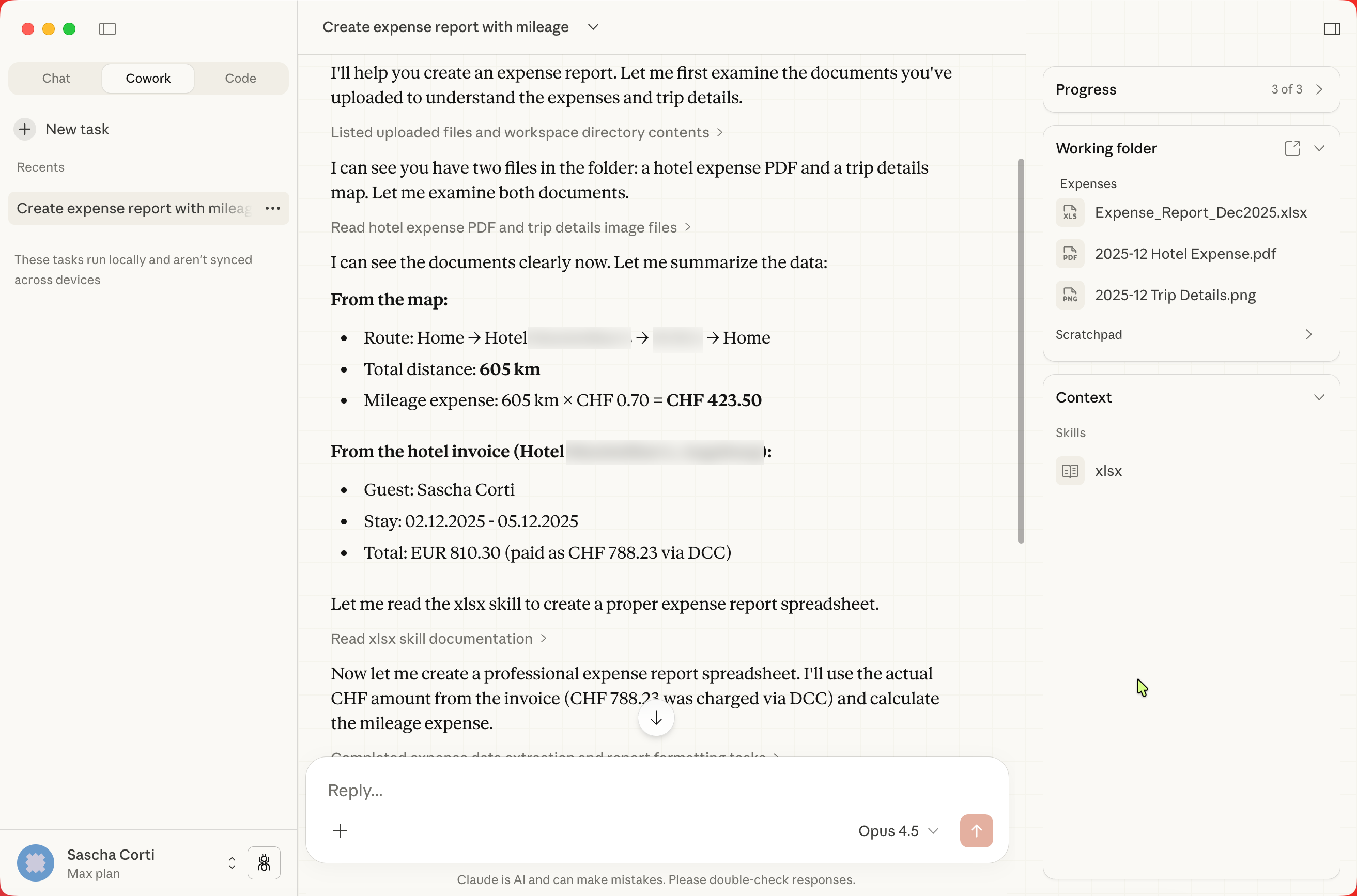 ~/Documents/Expenses/ ← Claude has access