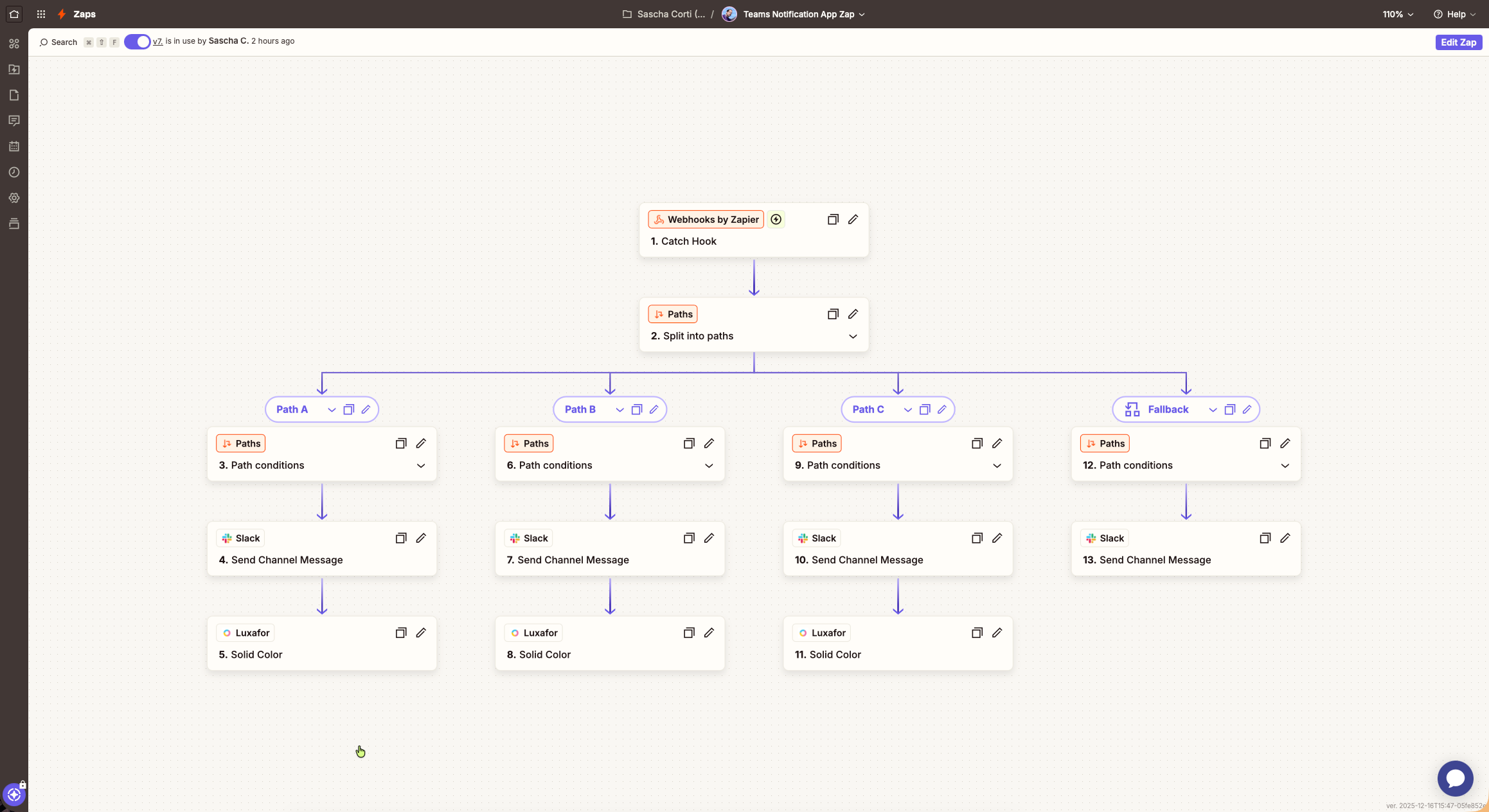 - Zapier Webhook – A Zap that receives notification events and controls the Luxafor flag